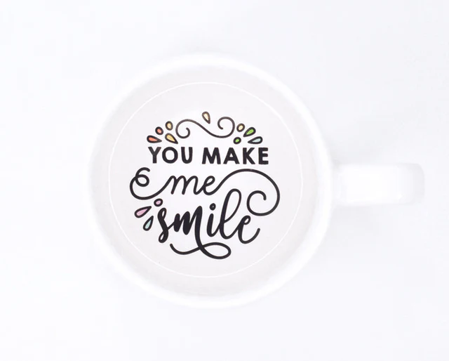 Dieser Becher hat eine besondere Botschaft im Inneren, die Sie zum Lächeln bringen wird, auch wenn Ihr Getränk schon weg ist!