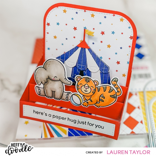 Mit diesem Set aus 14 Stanzformen kannst du ein großes Zelt oder ein kleines Podium gestalten.